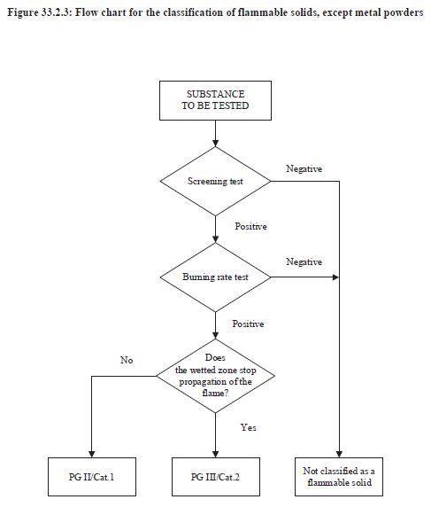 The standard testing method used to classify a material as a flammable solid comes from Part III of the United Nations (UN) Manual of Tests and Criteria. The testing method is Section 33.2.4 – Test N.1: Test Method for Flammable Solids. The N.1 Test Method includes two procedures: a preliminary screening test, and a burning rate test.