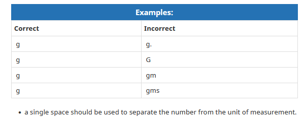 • Metric abbreviations. Ensure they are those that are accepted by the Government of Canada.