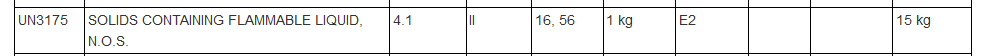 Note that there is the Packing Group II associated with this classification as well as the requirement to check Special Provisions 16 as well as 56. This is not a step you can skip.