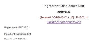 In the past, there was a list commonly referred to as the IDL (Ingredient Disclosure List). This was a list of chemicals that required disclosure on Canadian MSDS in the past. Note I say MSDS and not SDS as this is how old that regulation is.